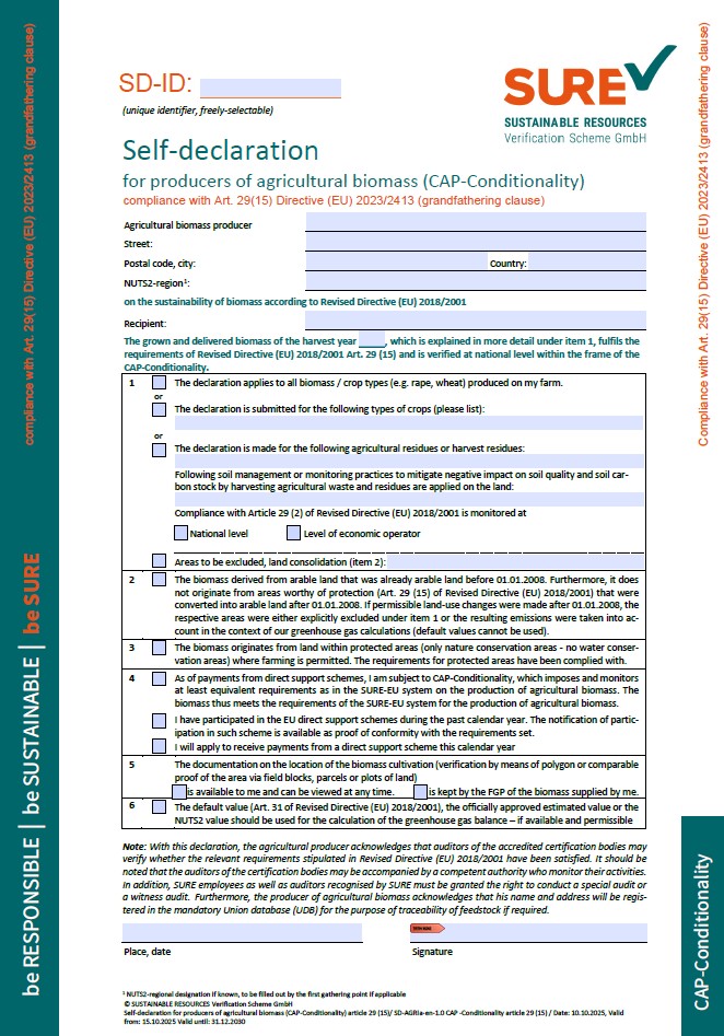 | Proof of Sustainability for the delivery of solid biomass fuel (Version 3.1, gültig ab 15.10.2025) | Englische Version Deutsche Version | Spanische Version | |