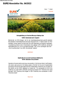 SURE-Newsletter No. 04/2022 SURE-Newsletter No. 04/2022 Horne I Contact Antragstellung zur Kontoeröffnung in Nabisy über SURE-Datenbank jetzt möglich Betreibende von EEG-Anlagen, die für den…