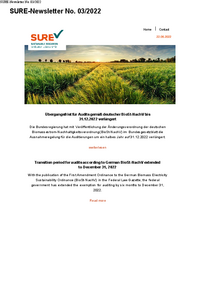 SURE-Newsletter No. 03/2022 SURE-Newsletter No. 03/2022 Horne I Contact Übergangsfrist für Audits gemäß deutscher BioSt-NachV bis 31.12.2022 verlängert Die Bundesregierung hat mit Veröffentlichung…