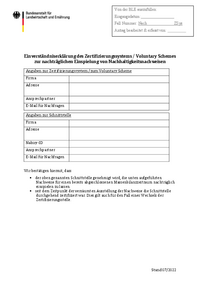 Von der BLE auszufüllen: Eingangsdatum: Fall Nummer: Nach ZSys Antrag bearbeitet & erfasst von: Einverständniserklärung des Zertifizierungssystems / Voluntary Schemes zur nachträglichen…